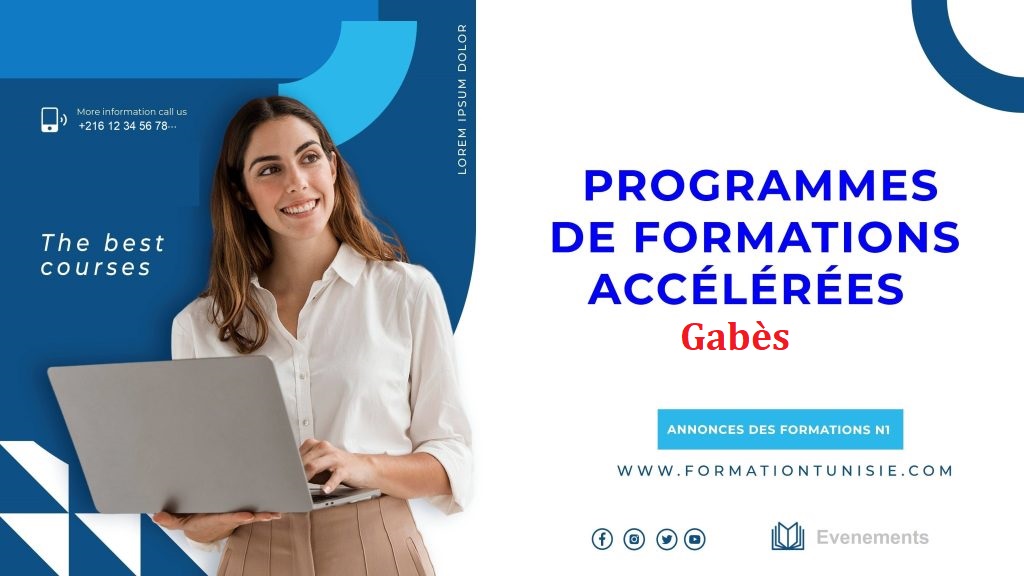 De nombreux apprenants recherchent des formations accélérées à Gabes, région réputée pour ses villes tels que Gabès Médina, Gabès Ouest, Métouia, Ghannouch, Nouvelle Matmata, Menzel El Habib, Matmata, El Hamma, Gabès Sud et Mareth.