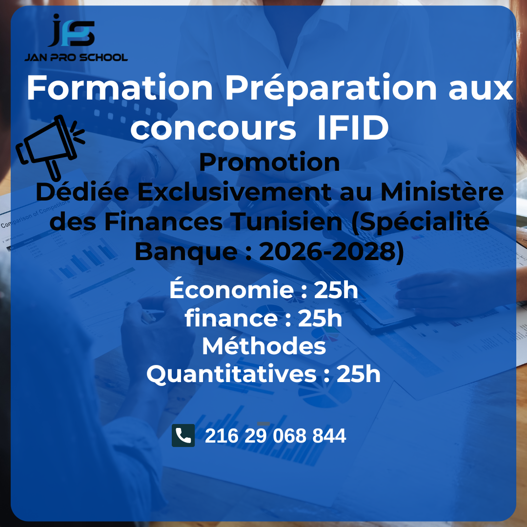 Rejoignez notre formation intensive et structurée spécialement conçue pour réussir le concours d’entrée à l’Institut de Financement du Développement du Maghreb Arabe.